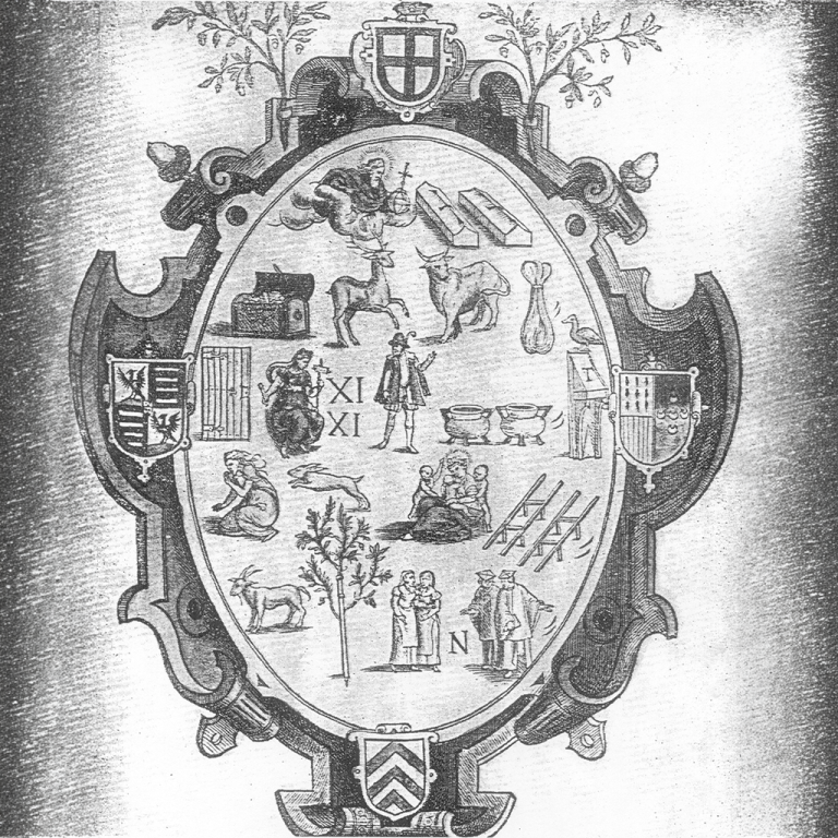 Iedere Kamer heeft ook een wapenschild : een embleem met symbolische tekens en vaak ook heraldische tekens. Hier ziet u het rebusblazoen van de Lierse Rederijkerskamer De Groeyende Boom. Het wapenschild bovenaan is dat van het Koninklijk Kapittel; midden links staat het schild van Florens van Mechelen, Hoofdman van de Kamer; rechts dat van Gaspar Schetz, Prins van de Kamer; onderaan bevindt zich het wapen van de stad Lier.Elke afbeelding uit de rebus geeft een woord aan om de oplossing te vinden. We zetten de woorden na mekaar en komen tot de onderstaande oplossing. Wat zoveel betekent als : “Wil goddelijke schatten verzamelen en onze Prins eren door de rethorica. Schuw nijd en wil liefde baren met De Groeiende Boom, dames en heren” Dat ze bijzonder gesteld waren op uiterlijk vertoon blijkt vooral uit de bijzondere aandacht die ze hadden voor hun kledij en hun kentekens. Veel Rederijkerskamers hadden ook een altaar in de kerk als teken van hun geloof en ook als teken van hun uitdrukkelijke aanwezigheid en betrokkenheid bij alles wat het maatschappelijke leven aanging.